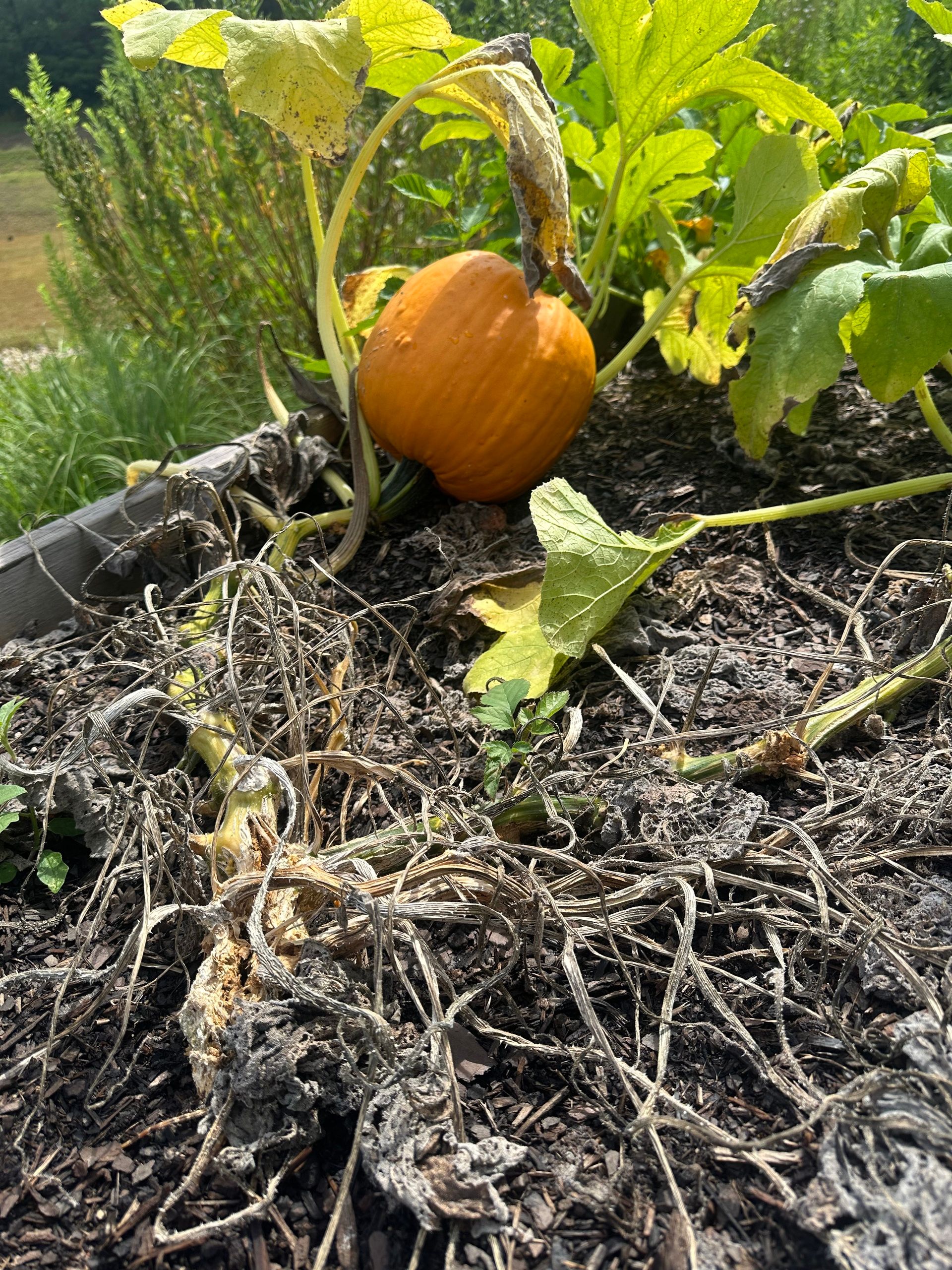 The vines looked great back in June. We had a healthy stand of pumpkins; full leaves, big growth. But then came the squash vine borer. You don’t usually catch them until they’ve already done their damage. By the time I noticed the wilting, one of our best vines was a goner.