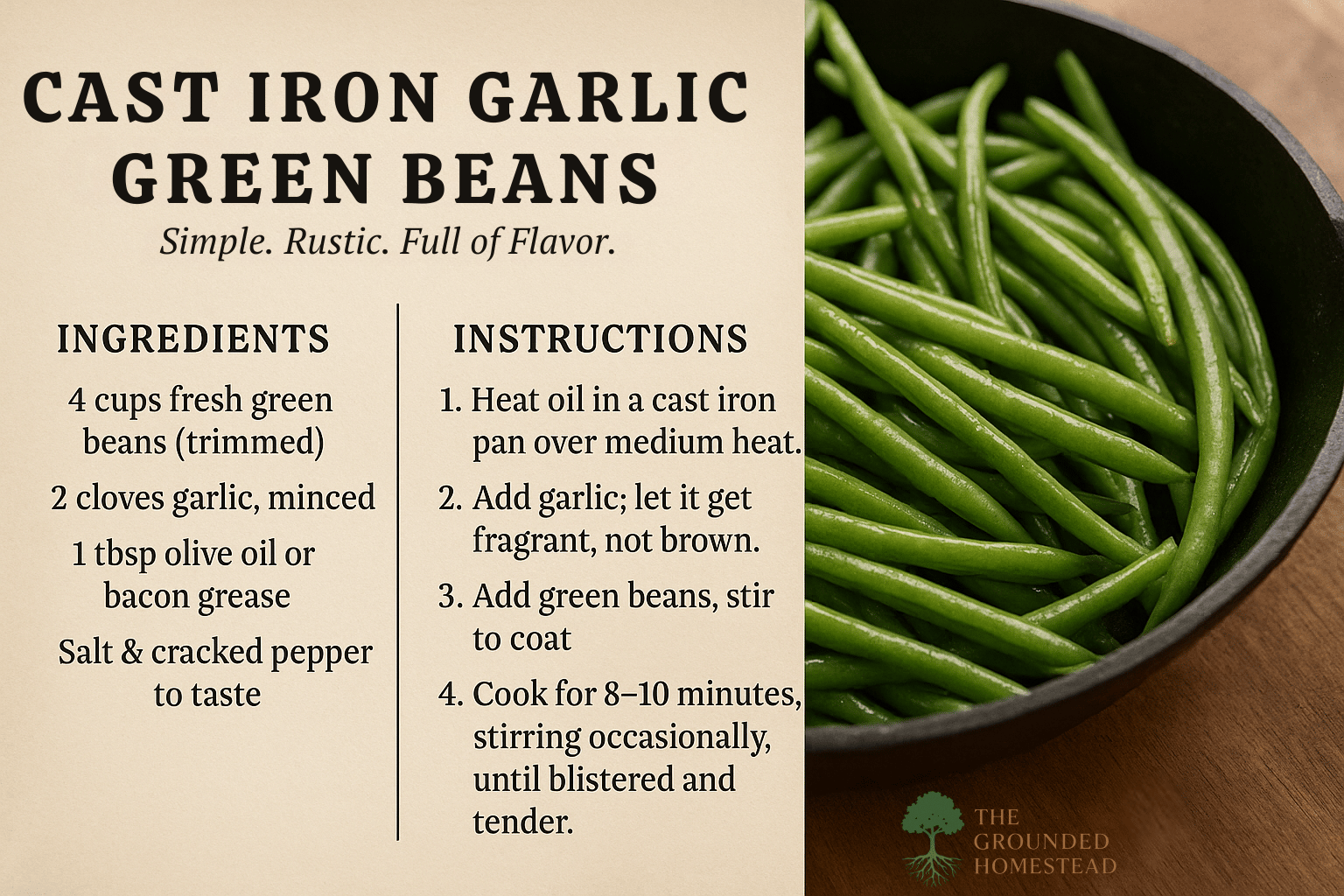 If you’ve got a mess of green beans coming off like we do, here’s one of our simplest go-to sides: