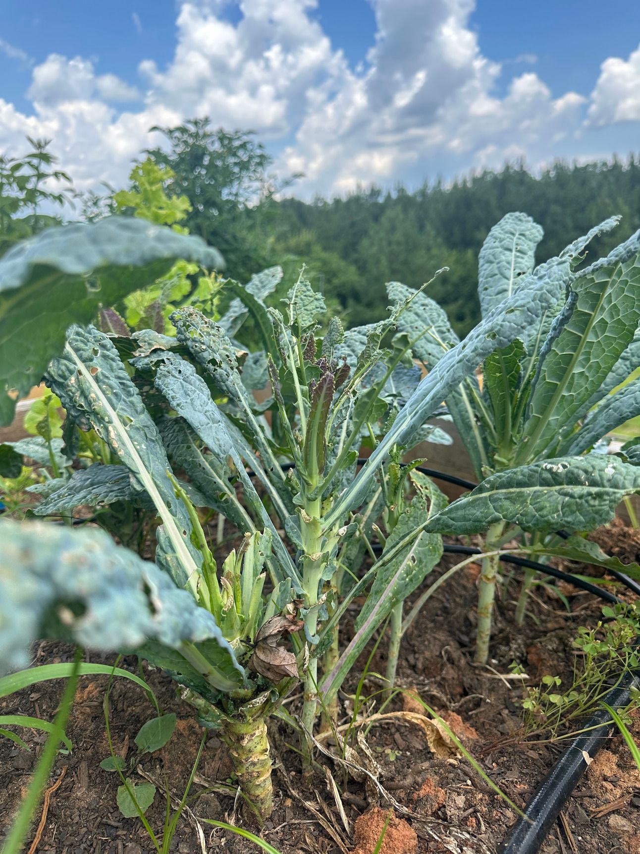 Our kale patch with some by cabbage worm damage before we could harvest